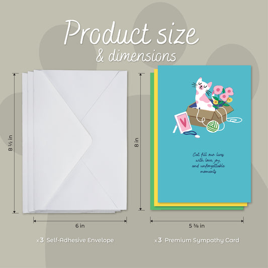 Set of 3 Pet Sympathy Cards — Dog Cat and pet